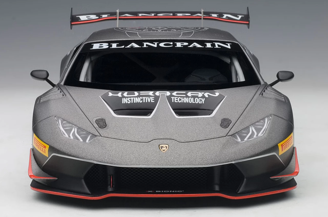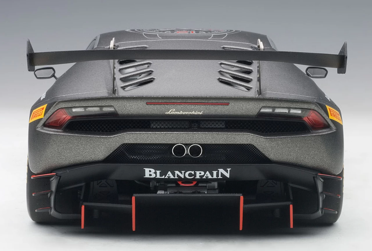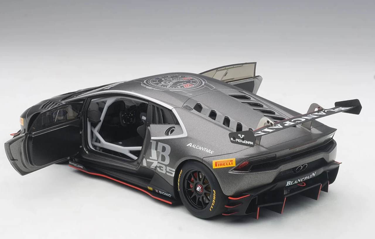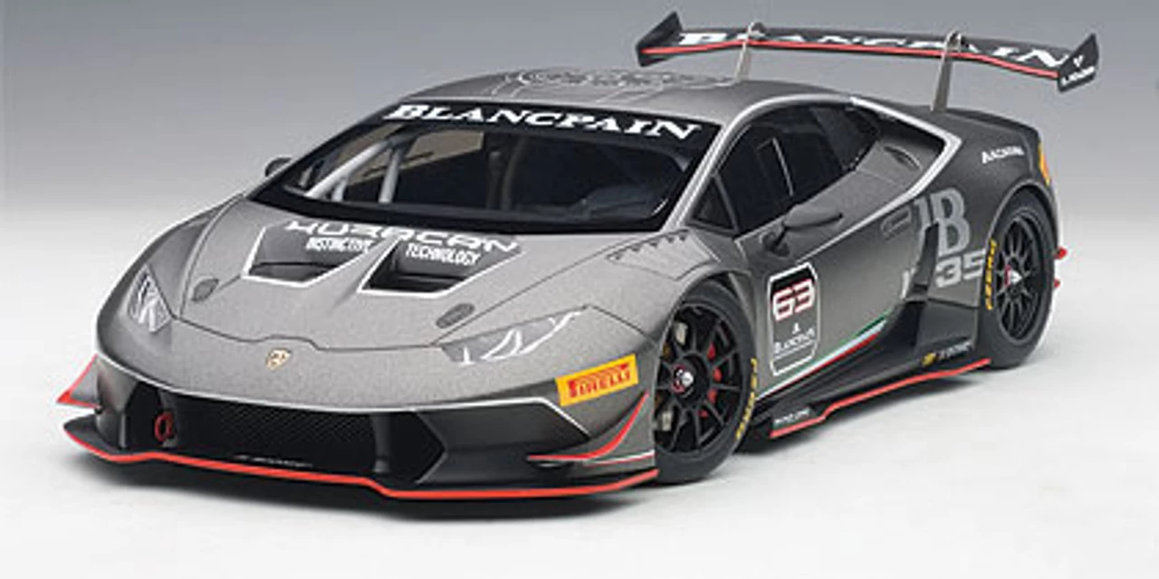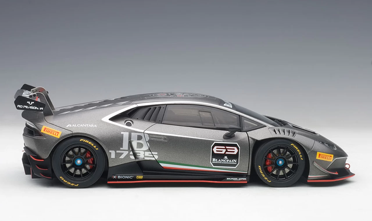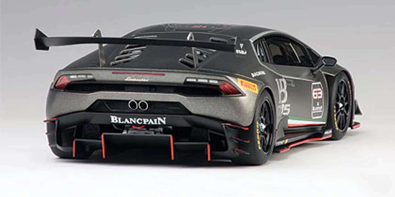 - Brand new 1:18 scale model car of 2015 Lamborghini Huracan Super Trofeo Dark Gray #63 model car by Autoart.