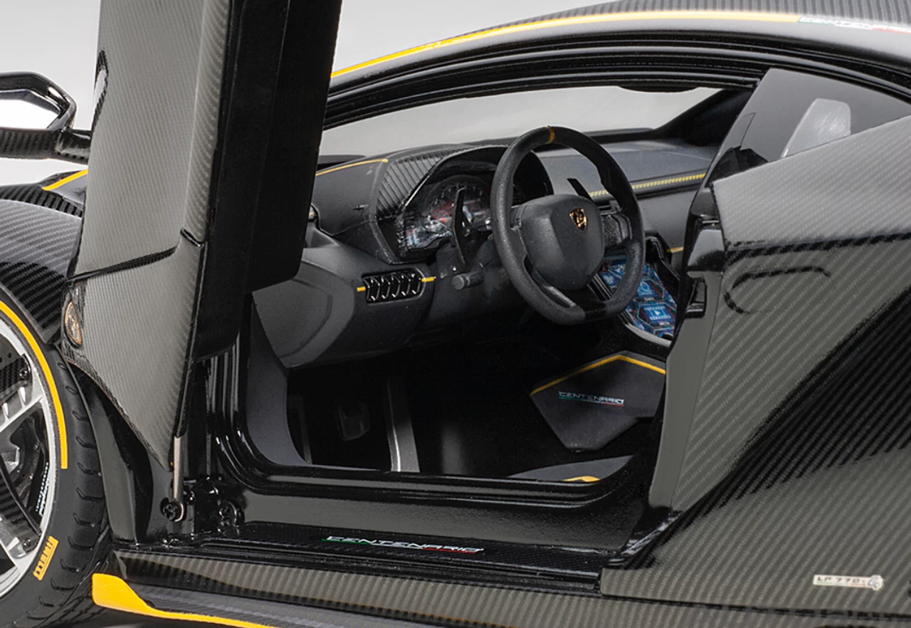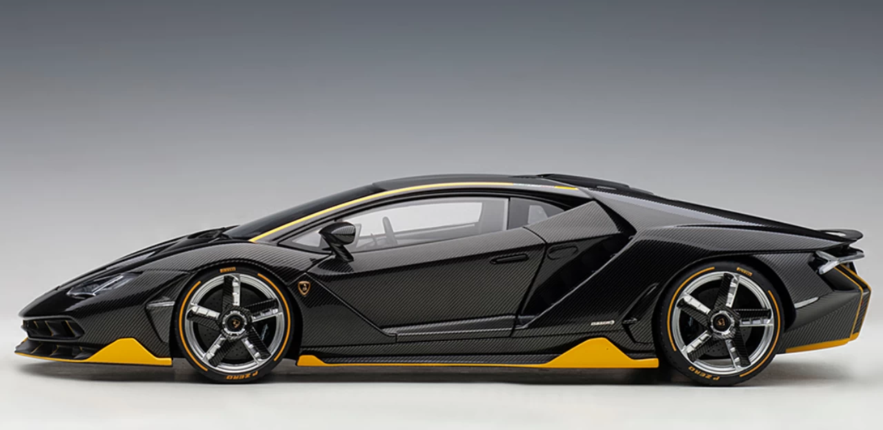 Brand New In Box 1/18 AUTOart Lamborghini Centenario (Clear Carbon with Yellow Accents) Car Model