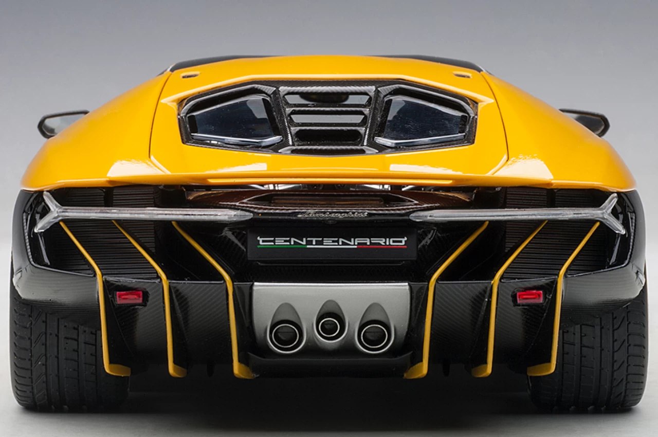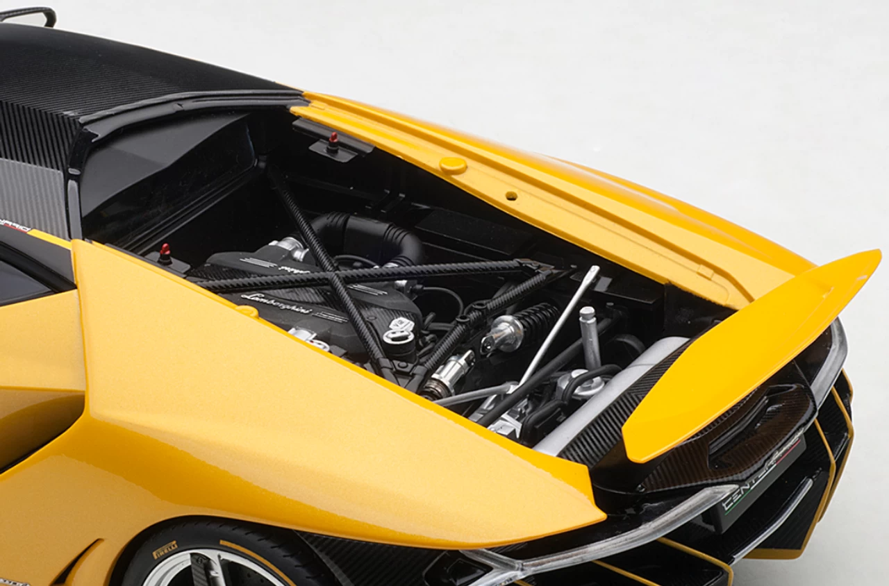 - Brand new 1/18 scale car model of Lamborghini Centenario New Giallo Orion / Metallic Yellow with Carbon Top model car by Autoart.