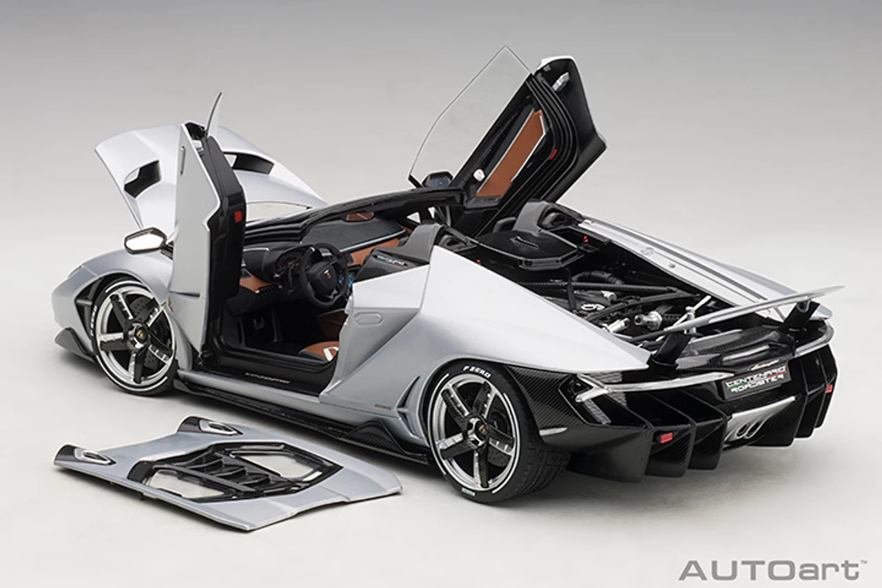 - Brand new 1/18 AUTOart Lamborghini Centenario Roadster (Argento Centenario Matte Silver Metallic) Diecast Car Model 79116.