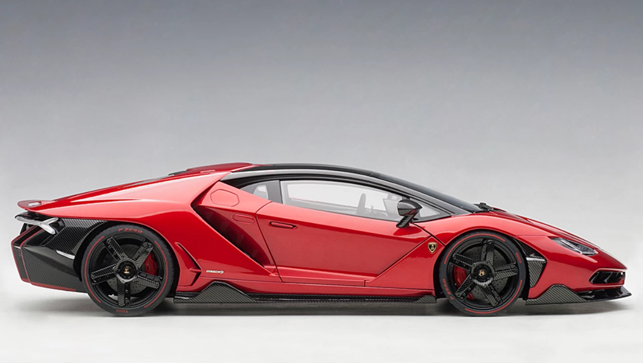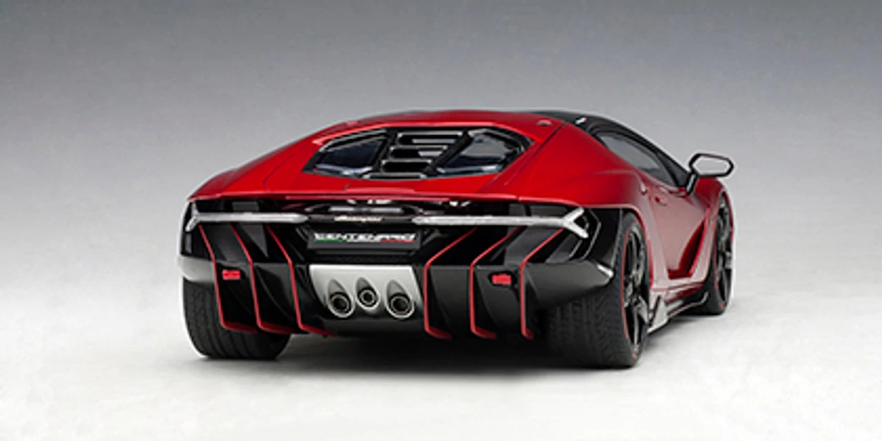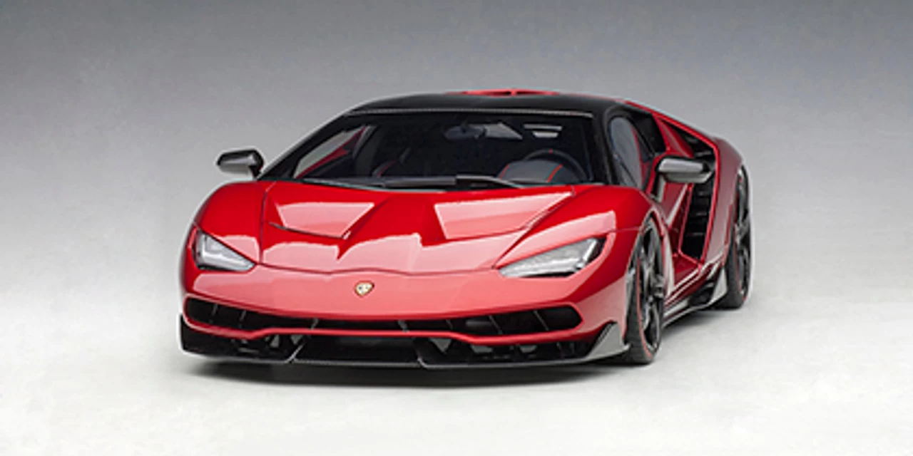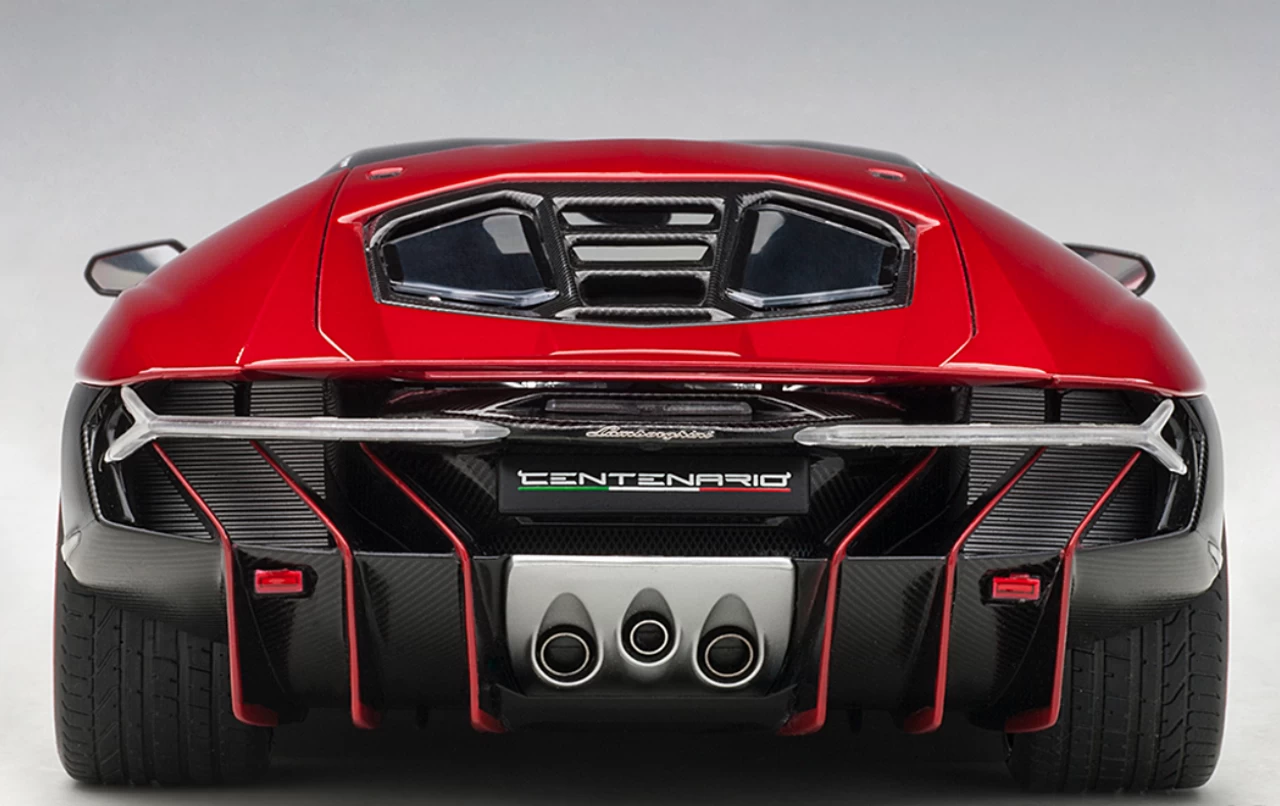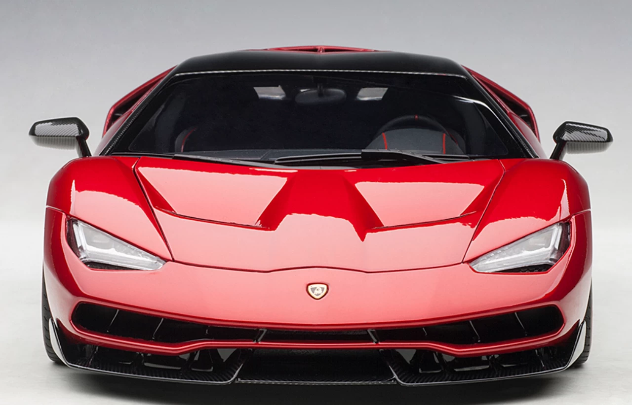 - Brand new 1/18 scale car model of Lamborghini Centenario Rosso Efesto / Metallic Red with Carbon Top model car by Autoart.