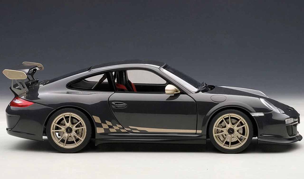 Brand New In Box 1/18 AUTOART PORSCHE 911(997) GT3 RS 3.8 (GREY BLACK W/ WHITE GOLD METALLIC STRIPES) Diecast Car Model 78142