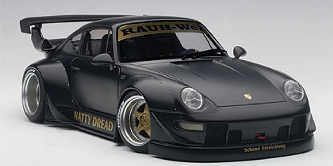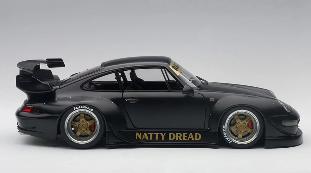 Brand New In Box 1/18 AUTOart Porsche 911 RWB 993 (MATT BLACK/GOLD WHEELS) Car Model
