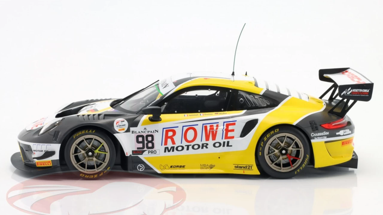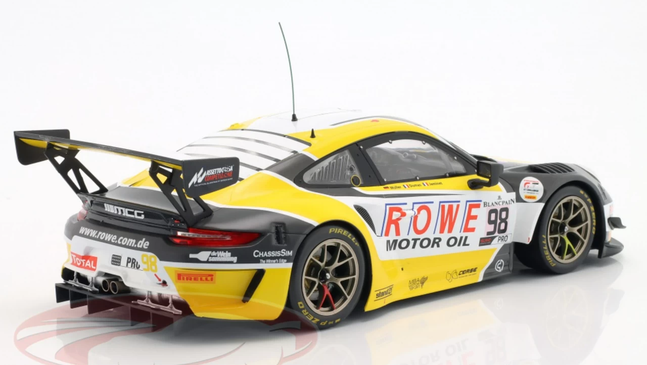 1/18 Ixo 2019 Porsche 911 GT3 R #98 5th 24h Spa Rowe Racing Romain Dumas, Sven Müller, Mathieu Jaminet Car Model