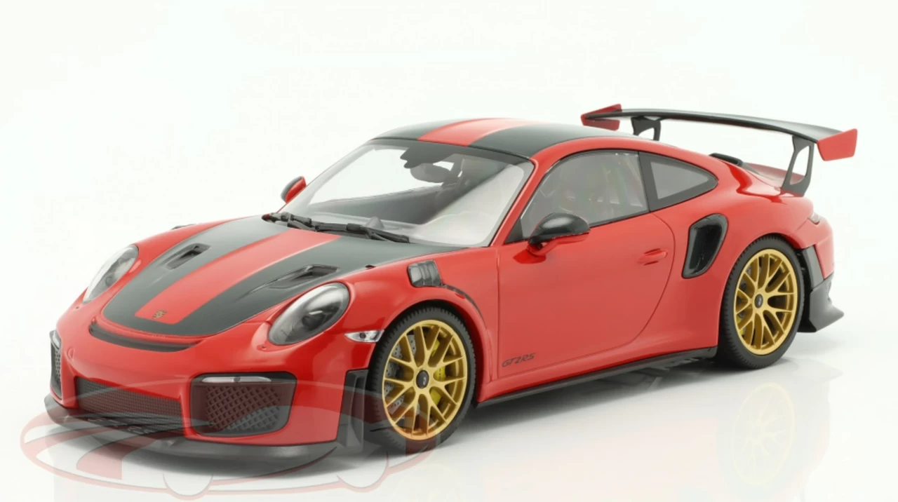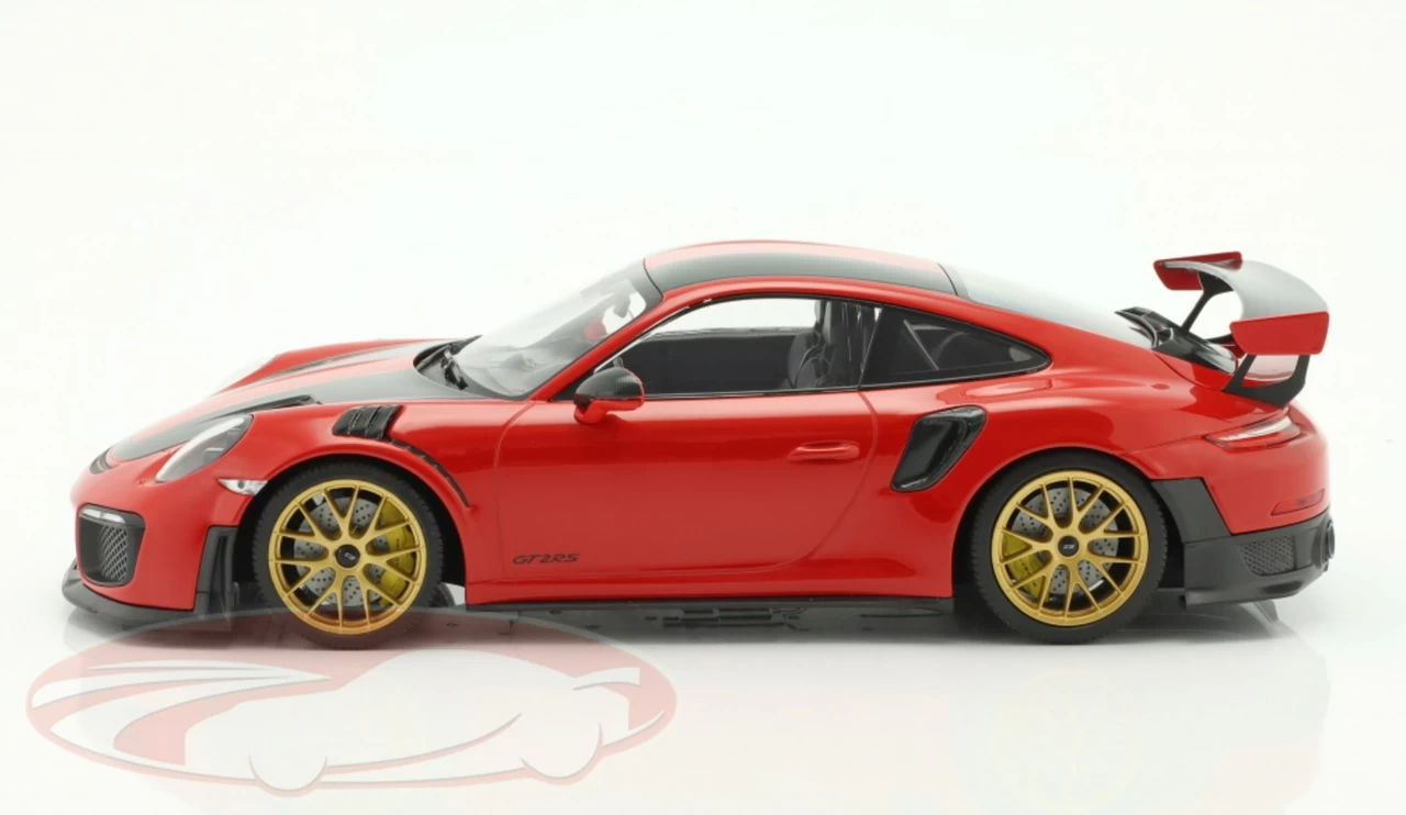 1/18 Minichamps 2018 Porsche 911 (991.2) GT2 RS Weissach Package (Red with Golden Wheels) Car Model