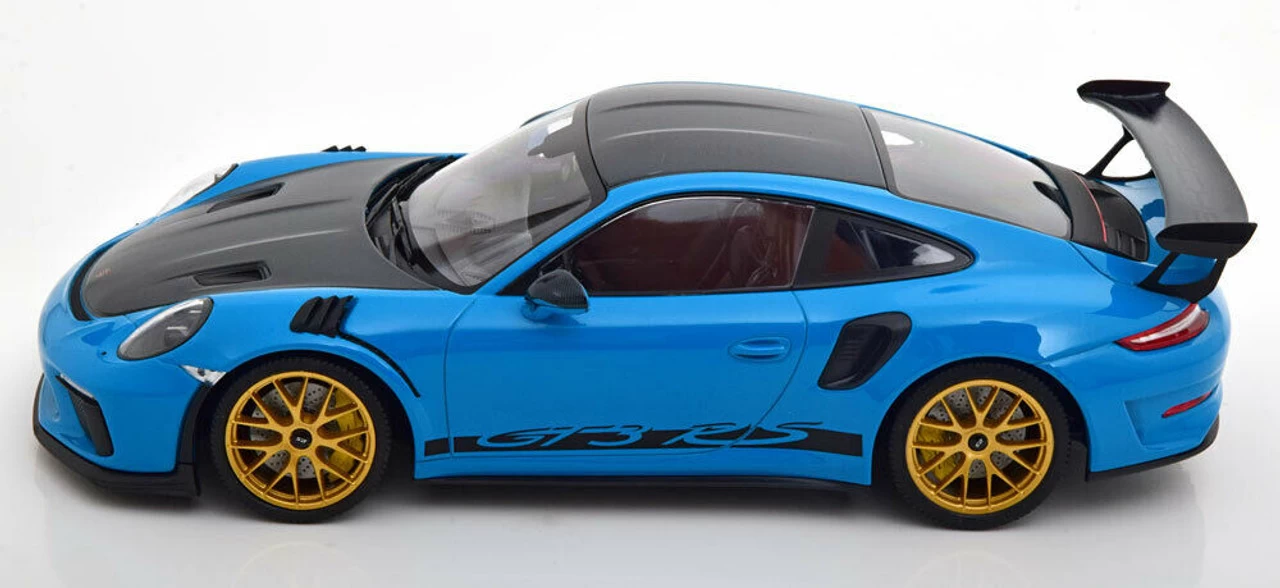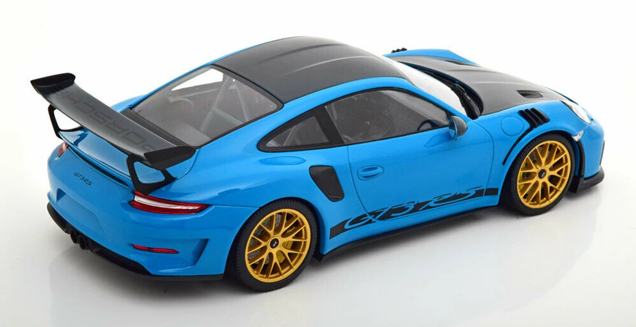 1/18 Minichamps 2019 Porsche 911 (991.2) GT3 RS Weissach Package with Side “GT3 RS” Print (Miami Blue with Golden Rims) Car Model Limited 111 Pieces