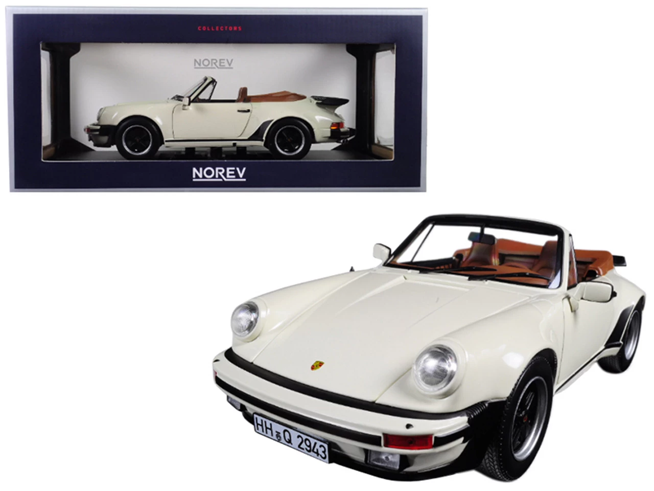- Brand new 1:18 scale diecast model of 1987 Porsche 911 Turbo Cabriolet Ivory die cast car model by Norev.
