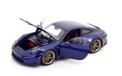 - Brand new 1/18 scale diecast car model of 2021 Porsche 911 GT3 Blue Metallic die cast model car by Norev.