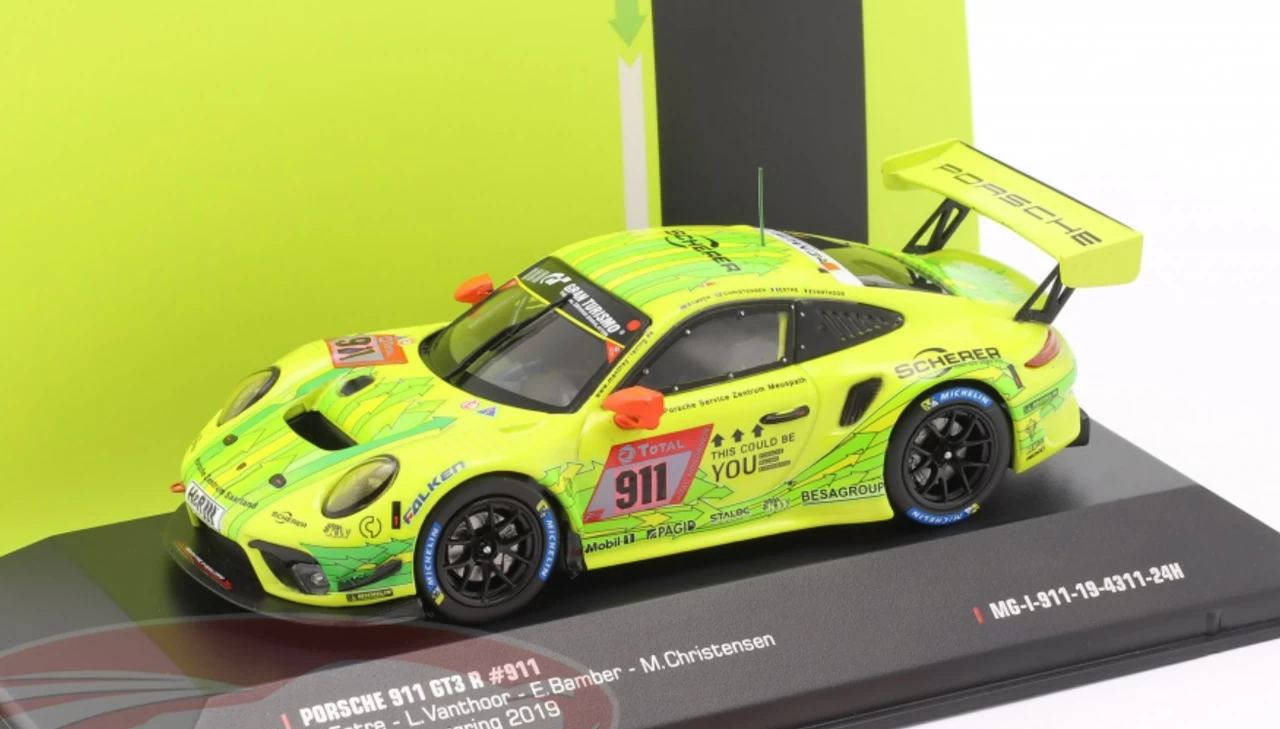 1/43 Ixo 2019 Porsche 911 GT3 R #911 2nd 24h Nürburgring Manthey-Racing Earl Bamber, Michael Christensen, Kevin Estre, Laurens Vanthoor Car Model
