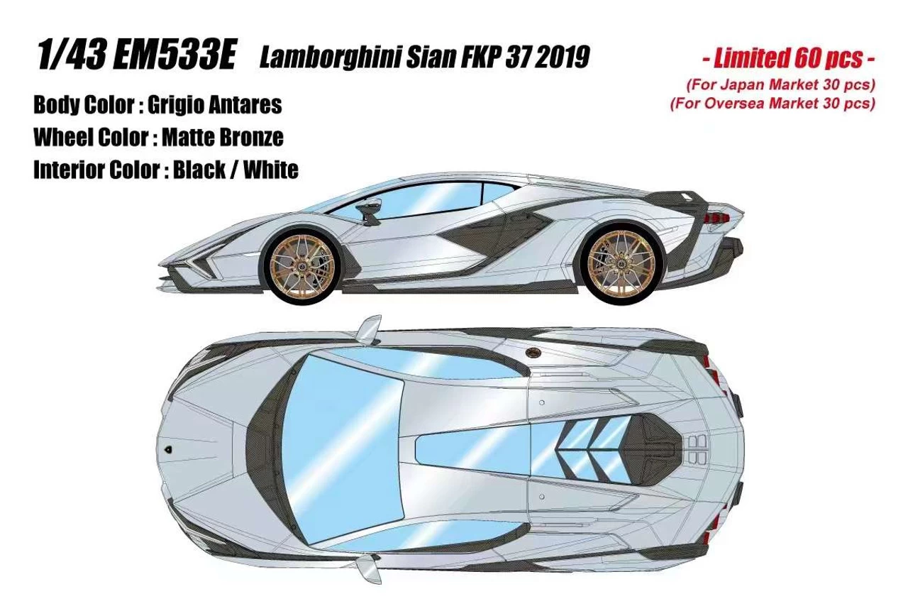 1/43 Makeup 2019 Lamhorghini Sian FKP 37 (Grigio Antares Grey) Car Model Limited 60 Pieces