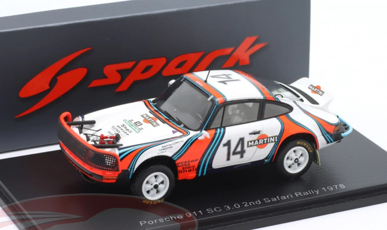 1/43 Spark 1978 Porsche 911 SC 3.0 #14 2nd Safari Rally Martini Racing Vic Preston Jr., John Lyall Car Model
