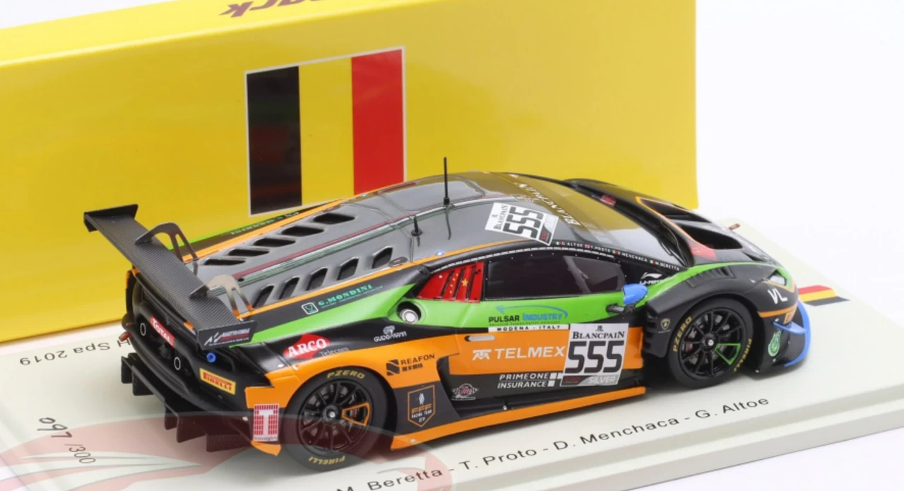 1/43 Spark 2019 Lamborghini Huracan GT3 Evo #555 24h Spa Orange 1 FFF Racing Team Michele Beretta, Taylor Proto, Diego Menchaca, Giacomo Altoè Car Model