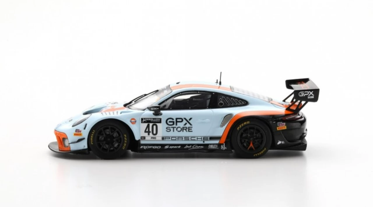 1/43 Spark 2020 Porsche 911 GT3 R GPX Racing Gulf #40 GT World Challenge GPX Racing Romain Dumas, Dennis Olsen, Thomas Preining Car Model