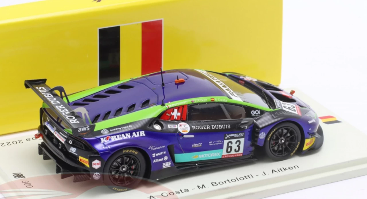 1/43 Spark 2022 Lamborghini Huracan GT3 Evo #63 24h Spa Emil Frey Racing Albert Costa, Mirko Bortolotti, Jack Aitken Car Model
