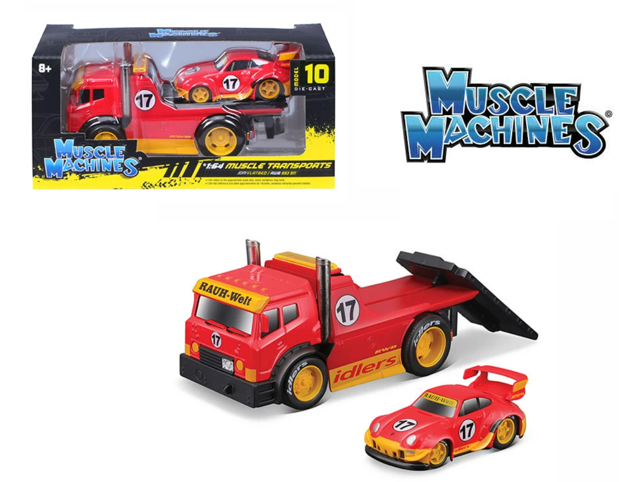 1/64 Muscle Machines JDM Flatbed With RWB 993 911 Red Car Models