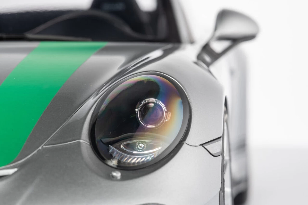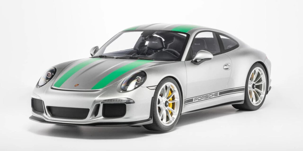 1/8 Minichamps 2016 Porsche 911 (991.1) R (Silver with Green Stripes) Resin Car Model Limited 99 Pieces
