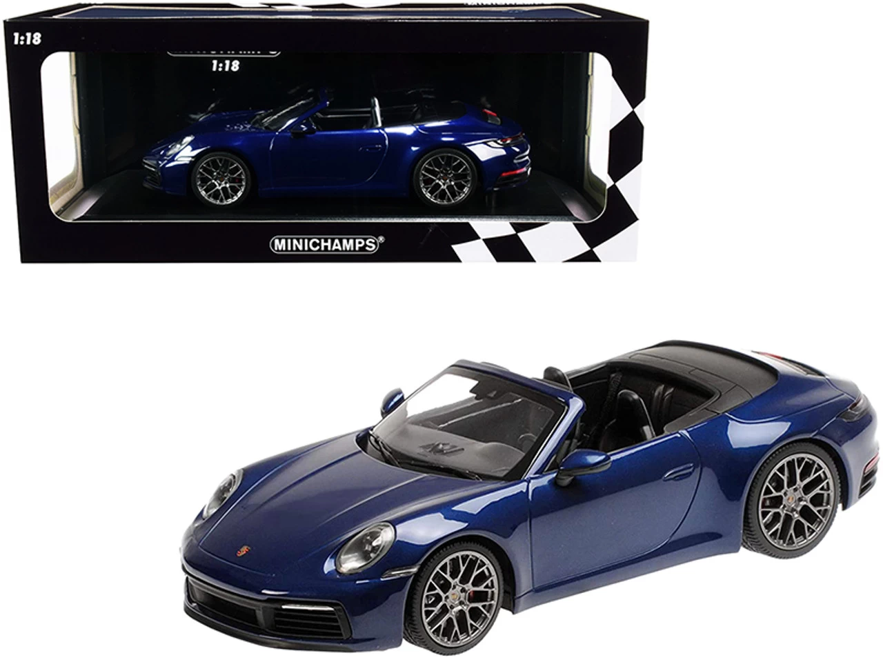 - Brand new 1/18 scale diecast car model of 2019 Porsche 911 Carrera 4S Cabriolet Dark Blue Metallic Limited Edition to 504 pieces Worldwide diecast model car by Minichamps.