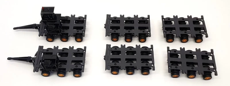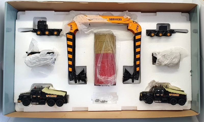 The 2 Scammel MODELS contained in the set do have some pin head blistering to the paintwork, misting on one of the Scammel’s side window. The other parts to the set (wheels, trailer and load) are in EXCELLENT condition – previously displayed. The BOX is in FAIR condition – overall wear on edges and tear/bents on bottom of box.