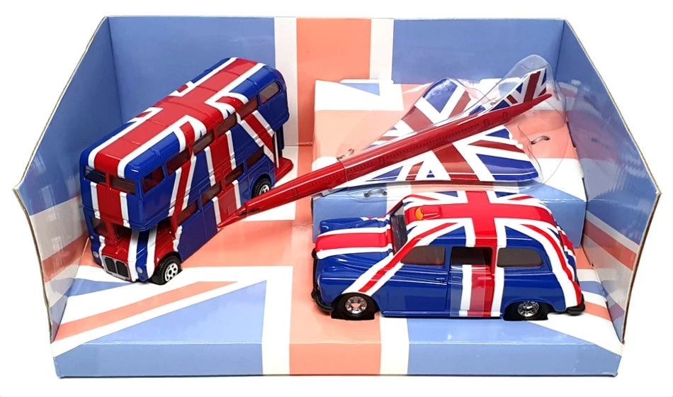 Be the first to review “Corgi CC99184 – 3 Piece Harrods Union Jack Set – Bus Taxi & Concorde Aircraft” Cancel reply