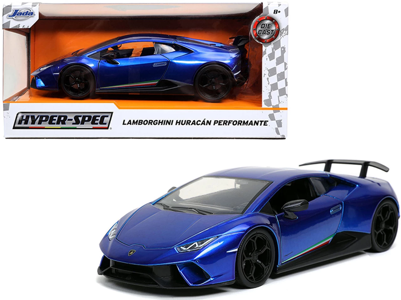 - Brand new 1/24 scale diecast car model of Lamborghini Huracan Perfomante Blue “Hyper-Spec” die cast model car by Jada.