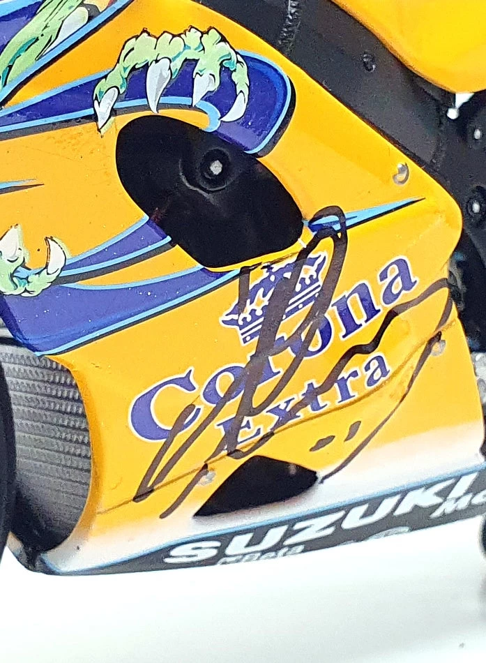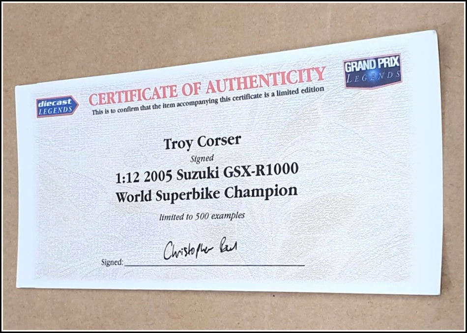 The MODEL is in EXCELLENT condition – previously displayed. The BOX is in EXCELLENT condition – slightly worn. (Model signed by Troy Corser