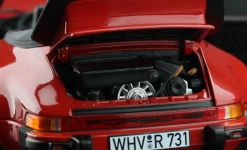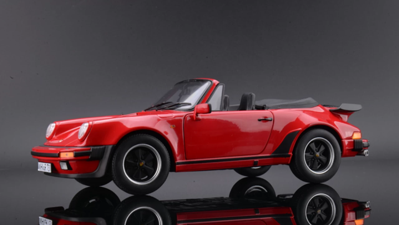 - Brand new 1/18 scale diecast car model of 1987 Porsche 911 Turbo Cabriolet Red die cast model car by Norev.