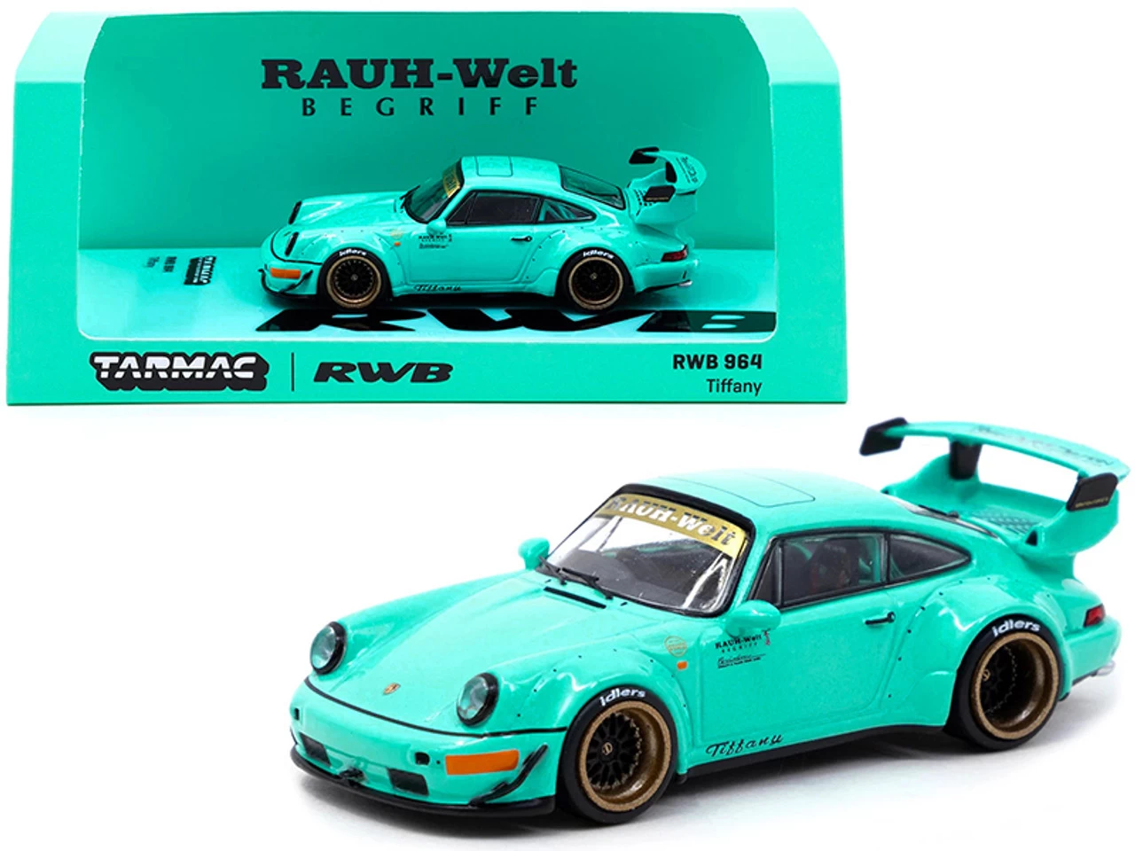 - Brand new 1/64 scale diecast car model of Porsche RWB 964 RHD (Right Hand Drive) “Tiffany” Teal Blue die cast model car by Tarmac Works.