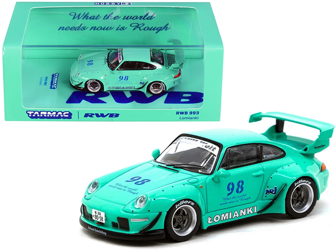 - Brand new 1/64 scale diecast car model of Porsche RWB 993 #98 “Lomianki” Turquoise die cast model car by Tarmac Works.