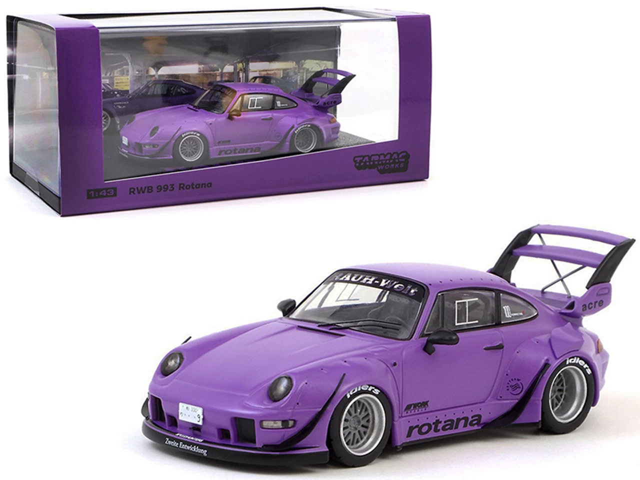 - Brand new 1/43 scale diecast car model of Porsche RWB 993 Rotana Purple “RAUH-Welt BEGRIFF” die cast model car by Tarmac Works.